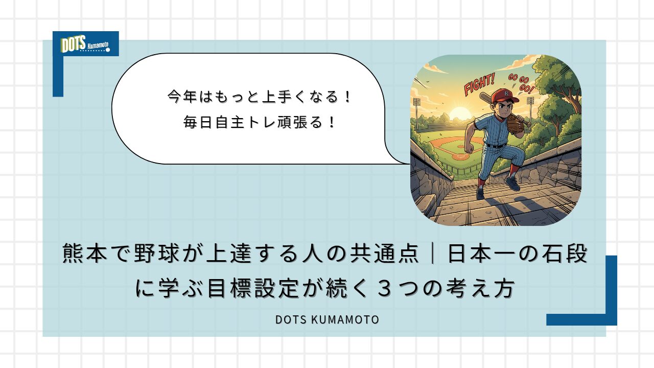 BLOG新年の目標、野球でどう達成する?熊本の日本一の石段(3,333段)を16年登り続ける経験から、熊本で野球に取り組む小・中学生が目標を継続・達成するための考え方を、指導者の視点で解説します。