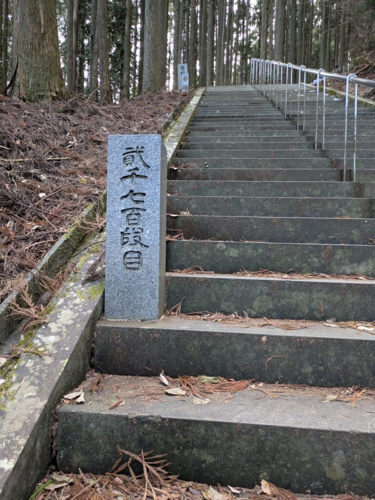 日本一の石段には、100段ごとに石標が立っています。