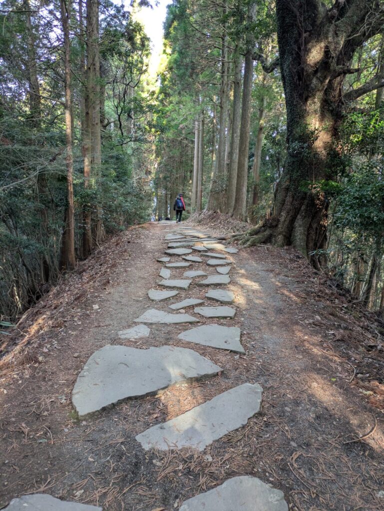 日本一の石段は、最初から最後まで直線の階段ではありません。途中に、少し平坦な道があります。